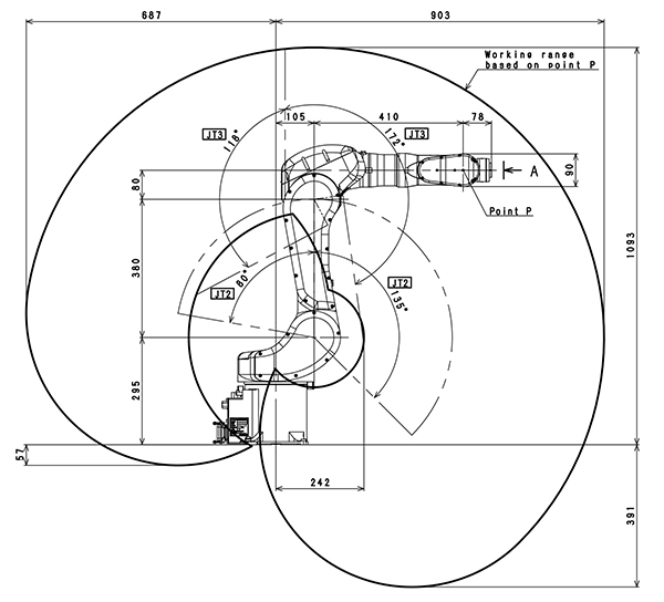 ![]() 運(yùn)動(dòng)范圍與尺寸